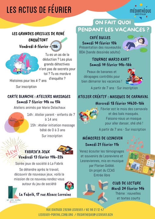 La Micro-Folie pose ses valises à la mairie de Lanarvily ! Jusqu’au 27 février, découvrez ce musée numérique gratuit à la mairie (9, Le Bourg). Visite libre : Mercredi et samedi (10h30-12h / 14h-18h) et vendredi (14h-18h). Thématiques : Créatures légendaires, Sport,...