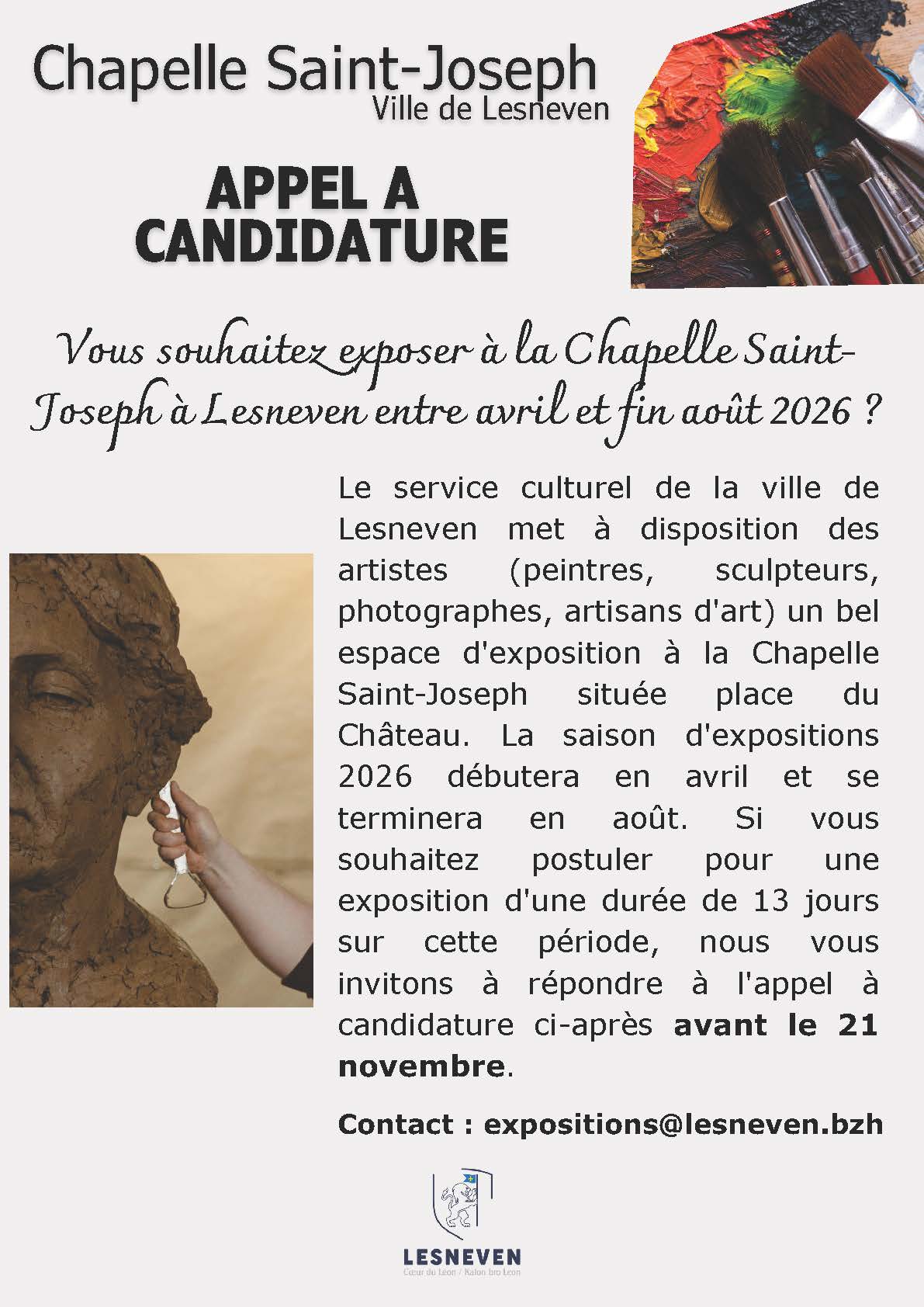Entre avril et fin août 2026, divers artistes exposeront à la Chapelle Saint-Joseph.